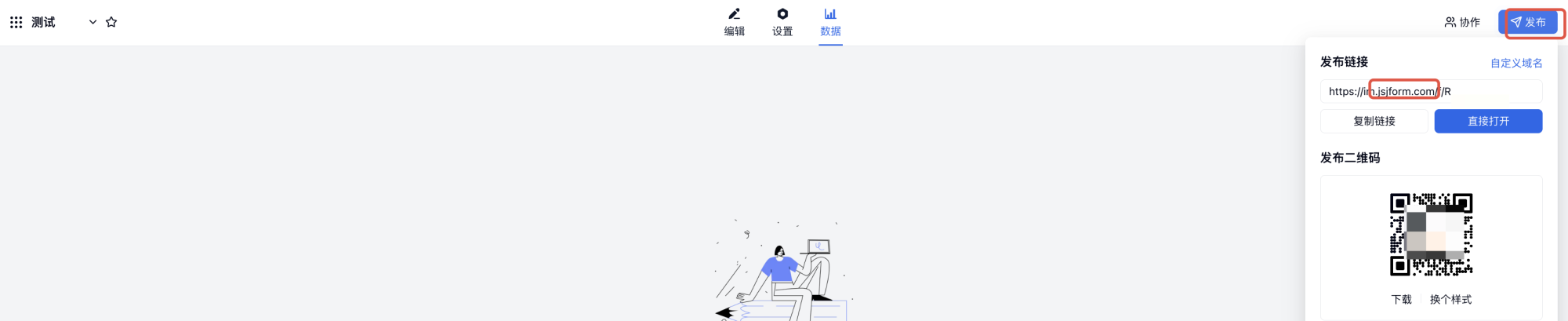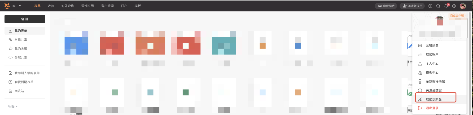 切换到新版登录网站( next.jinshuju.net ),进入该表单,右上角点击「发布」,获取新的链接或者二维码进行发布。这是同一个表单,只是新旧版本的域名不一样,收集的数据也都将进入同一个表单。