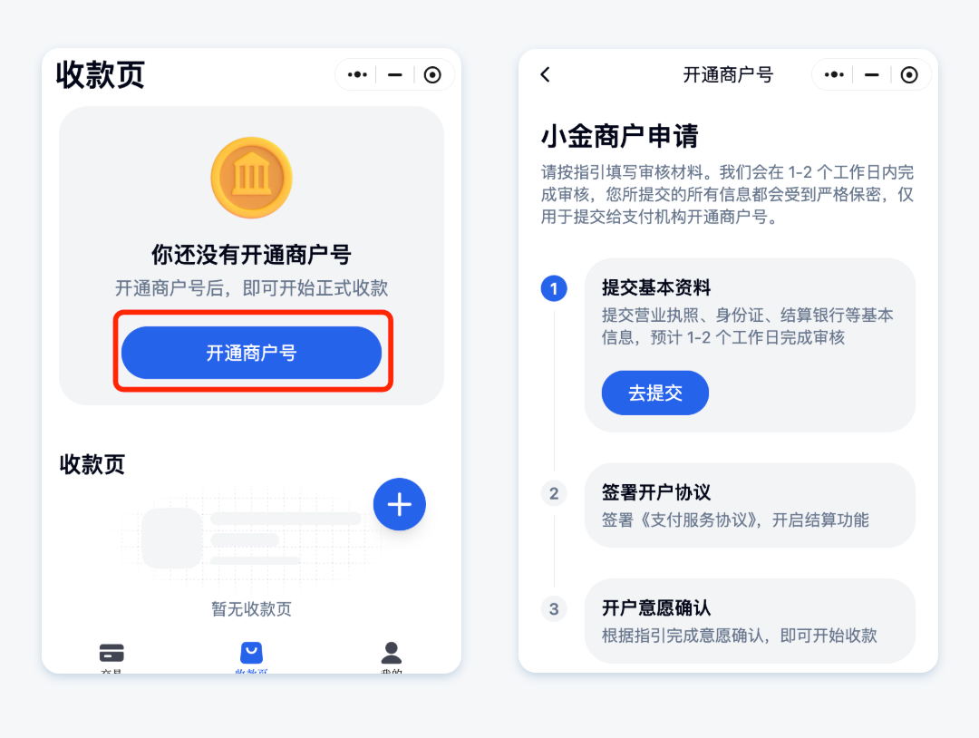 现在就访问小金商户助手,立即开通你的活动收款权限,开启 500 元免费额度尝试吧~