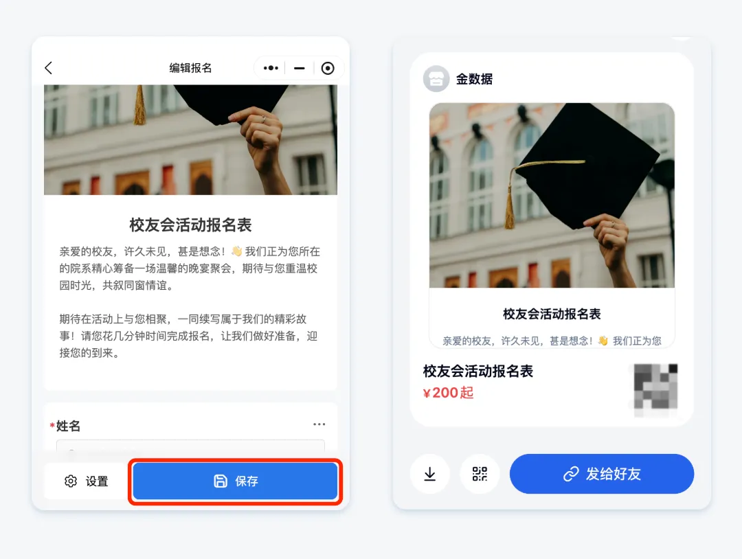 设置完成后,获取生成的报名链接或二维码。将其嵌入你的微信公众号推文、通过海报形式发在朋友圈,或者直接转发到校友群中。