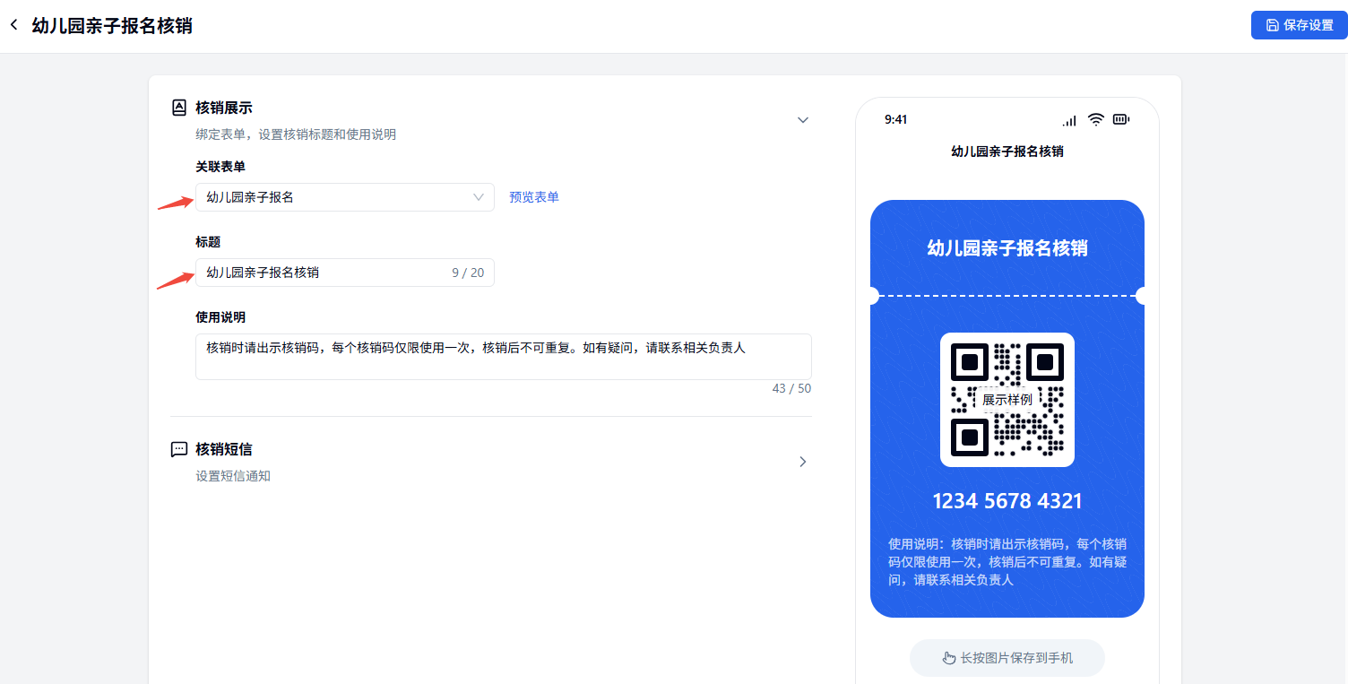 填写表单自动发放核销码