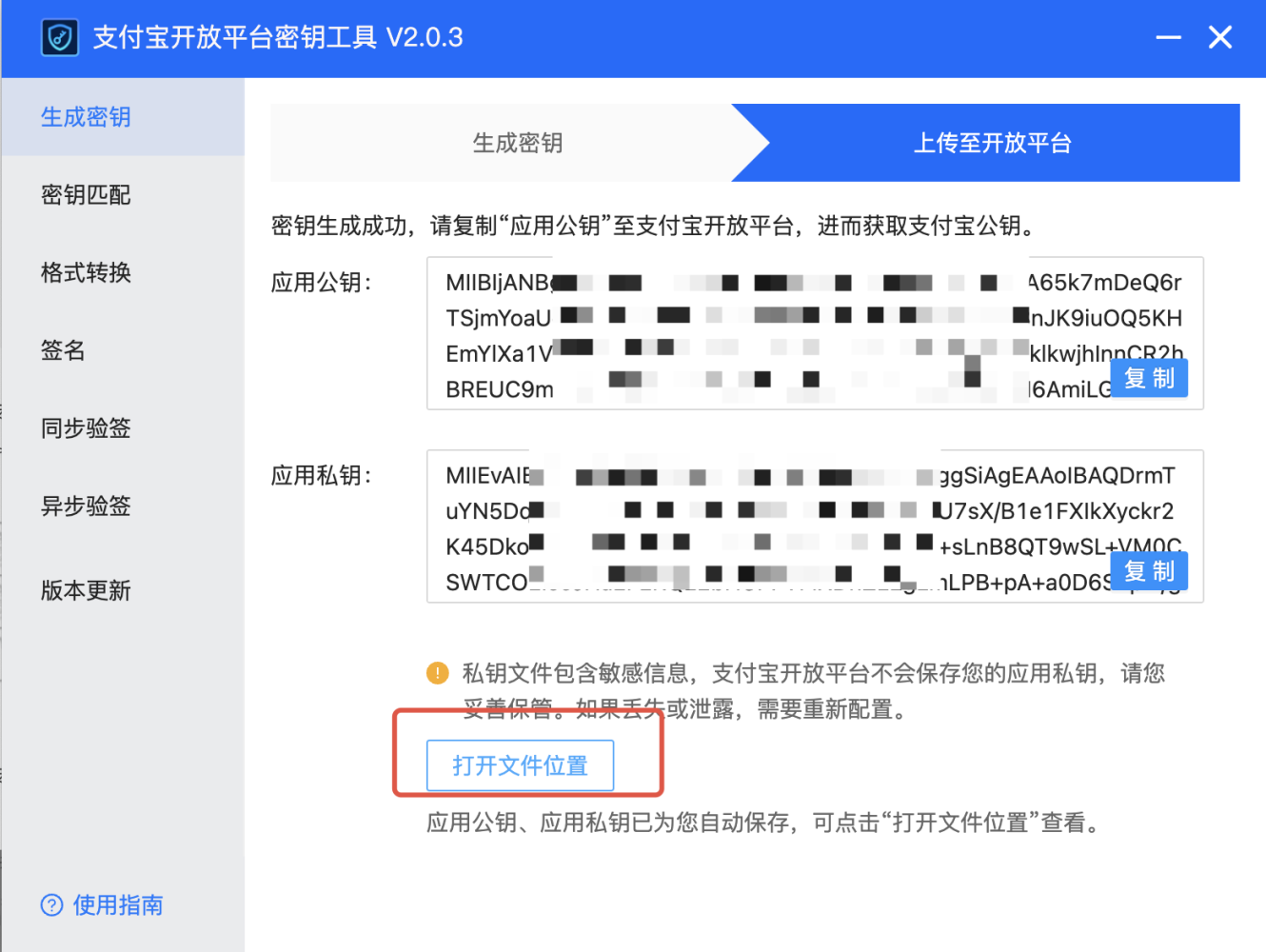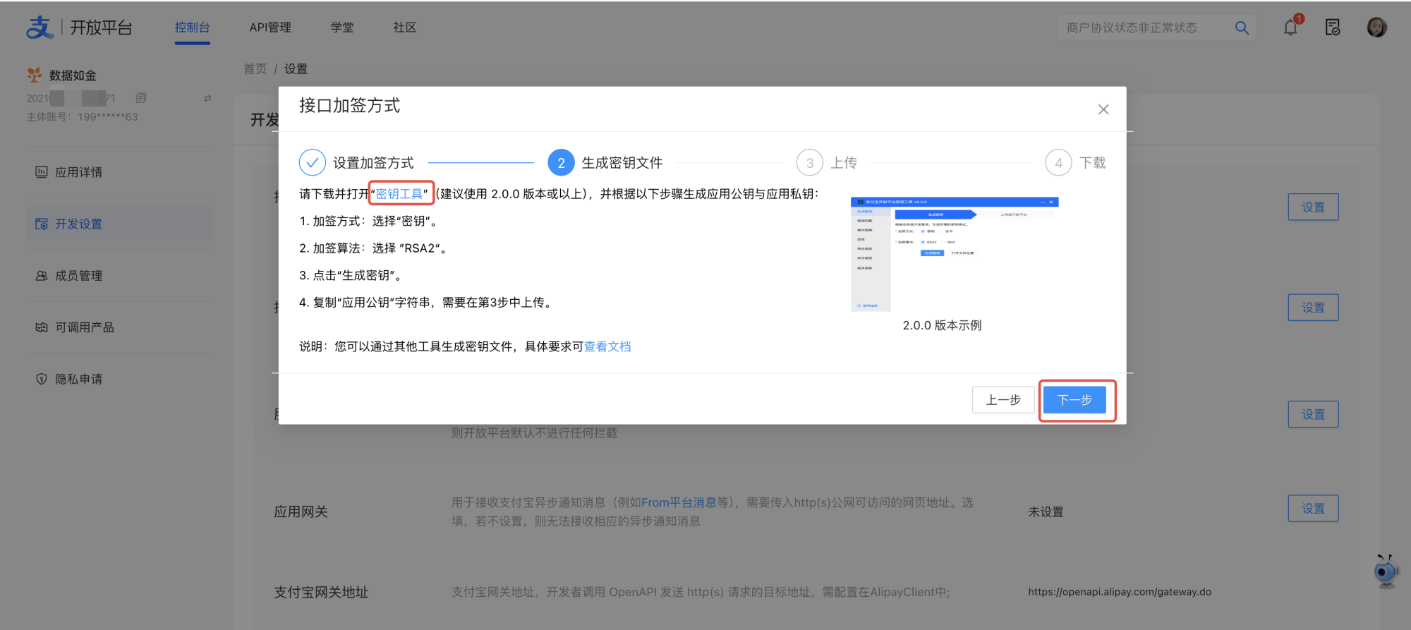 4.根据提示下载密钥工具,并生成密钥,点击查看 详细步骤 。