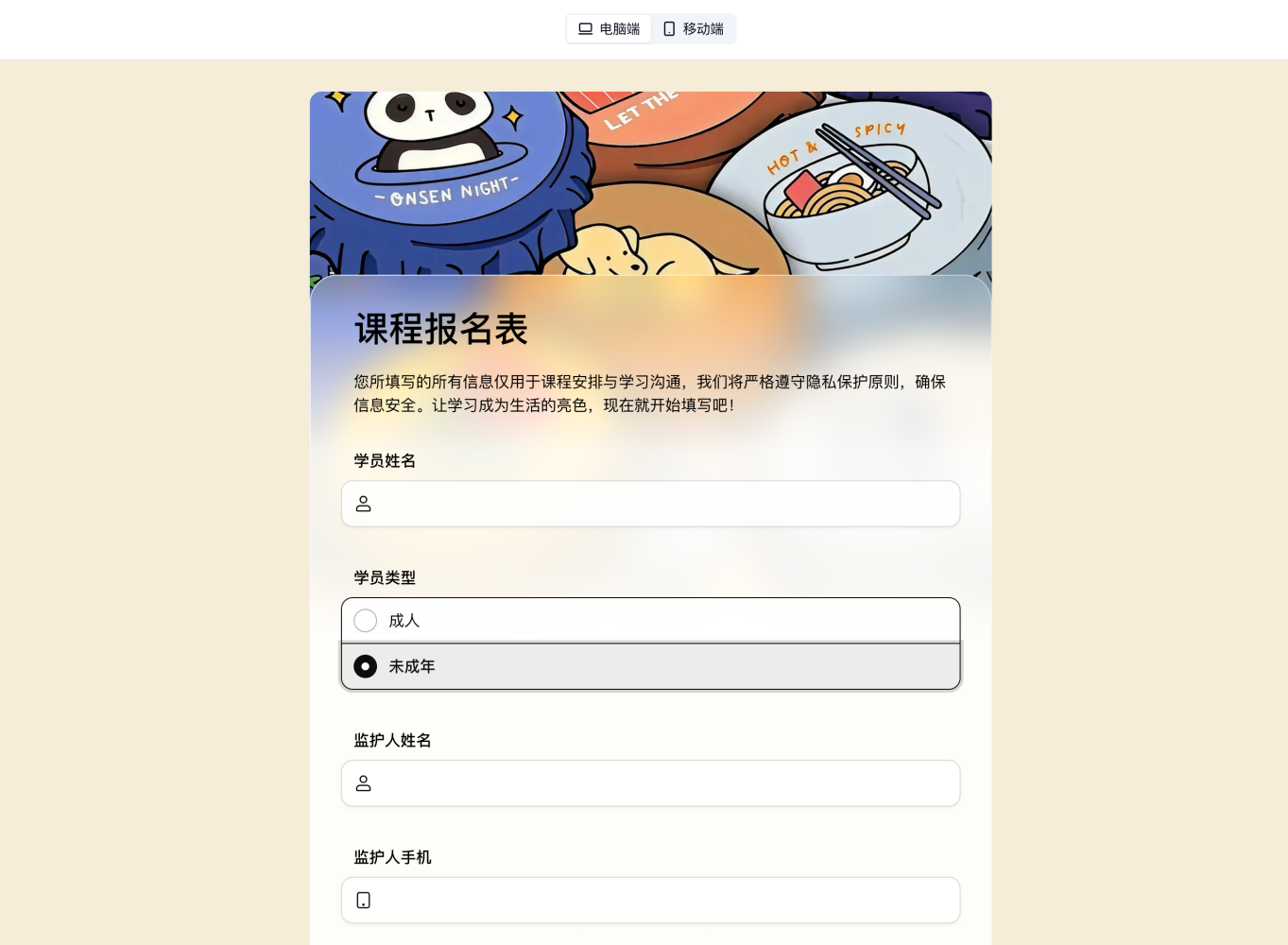 问题不是字段多,是同一张报名表同时面对了不同类型的学员,却给所有人看了所有字段。