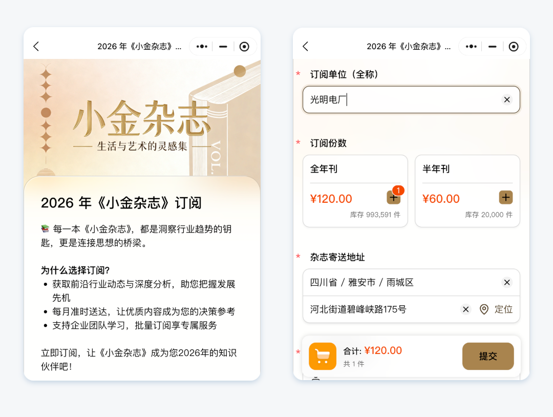 如何高效开启杂志、期刊的线上订阅,并同步完成费用收取、邮寄地址采集以及发票信息登记?