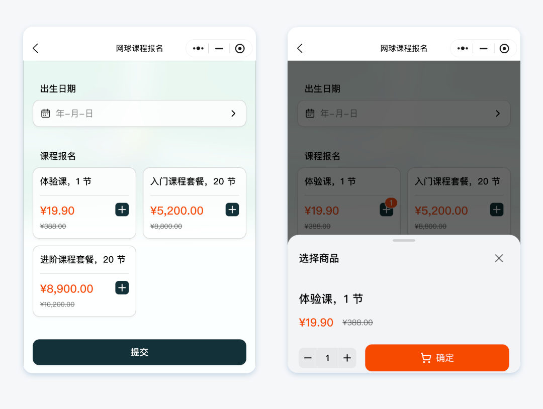 添加“商品”字段,并在设置中输入你的课程名称(如:体验课)、价格(如: 19.9元)以及库存数量。如果涉及多类课程,可添加商品,系统会自动计算总价。