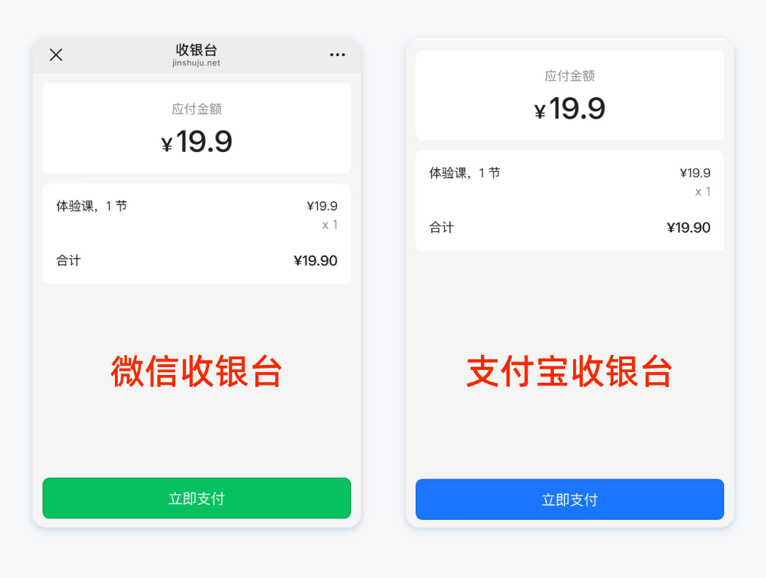 填写完学员信息后,直接唤起微信/支付宝支付,安全合规。