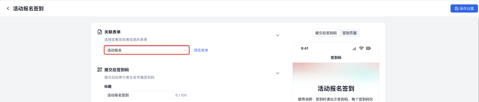 提交后签到码标题、使用说明:此处填写的内容将显示在参与者的签到码页面,可用于告知其签到地点、时间等关键信息。