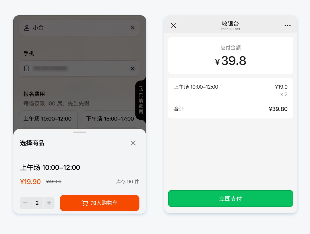 有没有一种方式:报名者点开一个微信链接,可以自己选择场次/票种/数量并在线支付;你在后台能看到订单、随时退款、资金可提现,数据和钱一一对应?