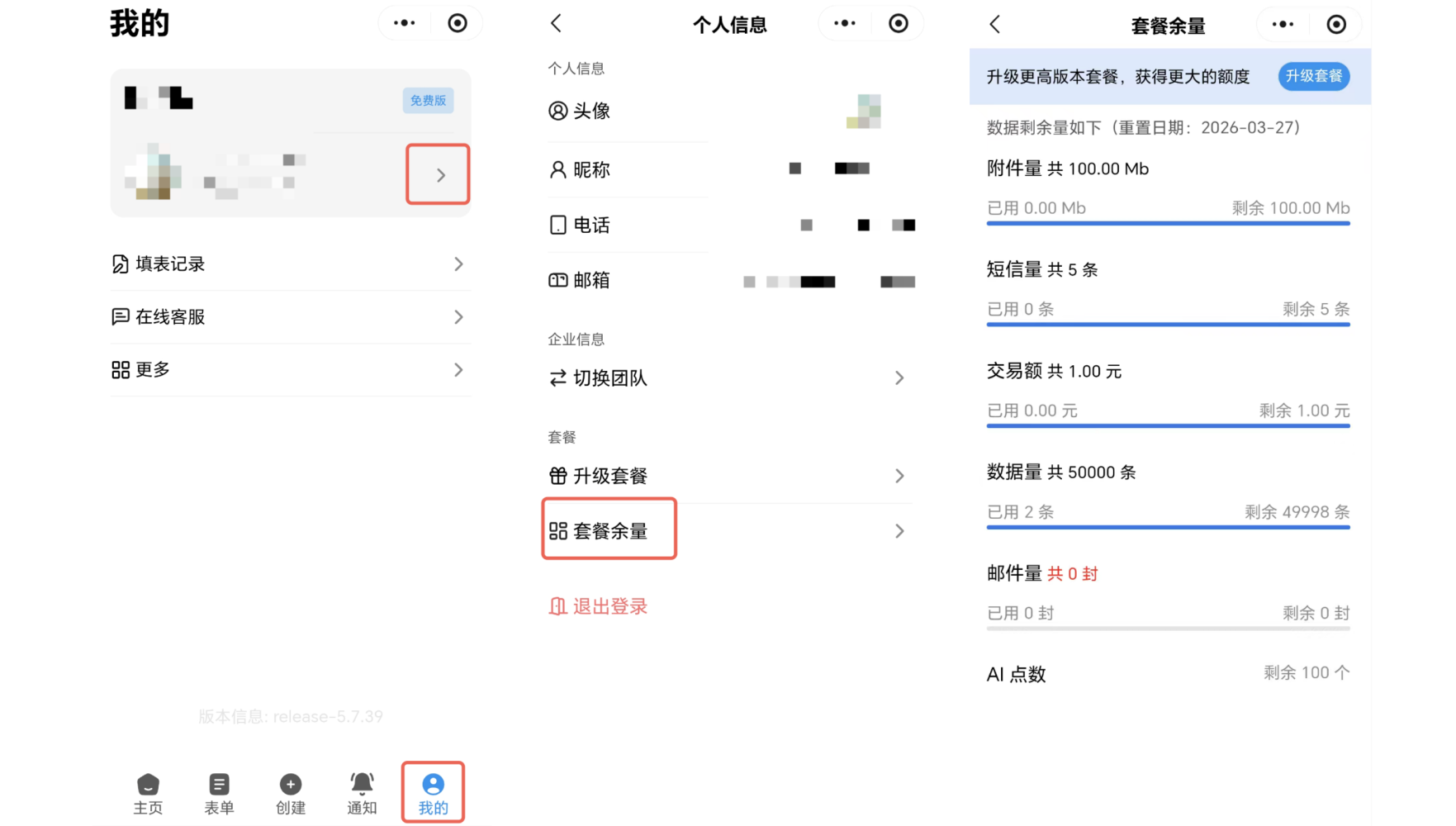 ⚠️注意:如需查看账号的套餐版本、套餐有效期、企业试用有效期,请电脑 PC 端登录账号后查看。
