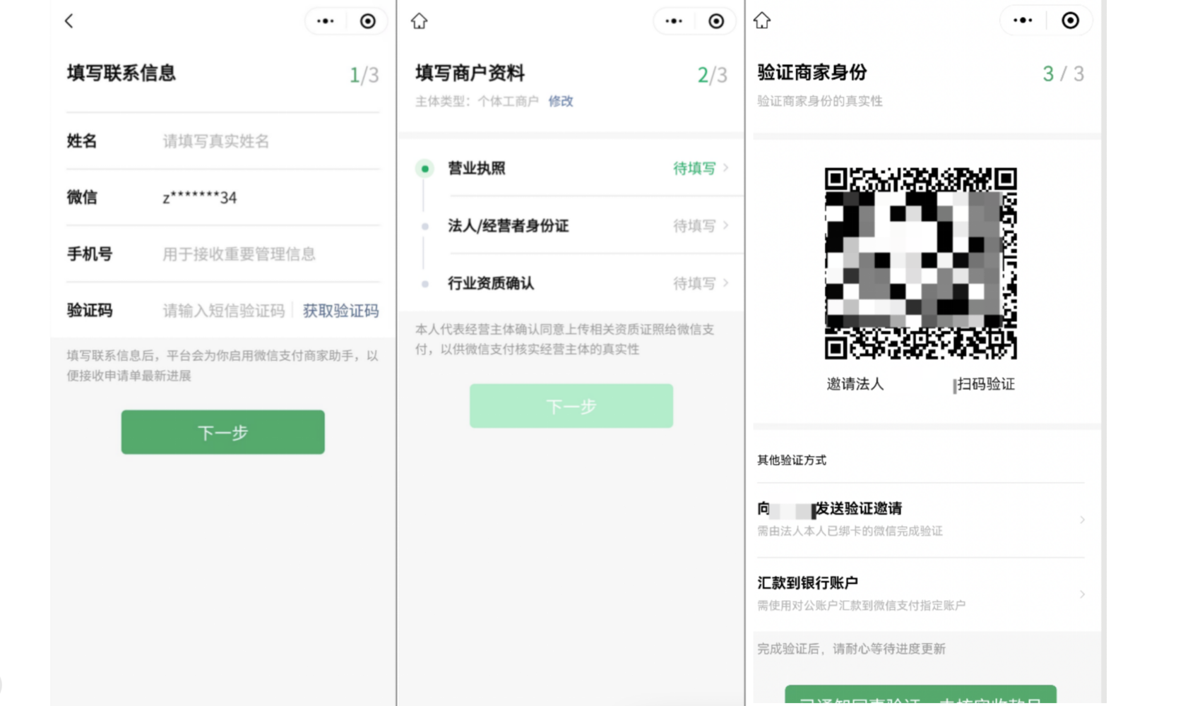 完成资料审核和身份验证后,提交资料即可立即核实收款商户号,点击确认即可完成身份核验。