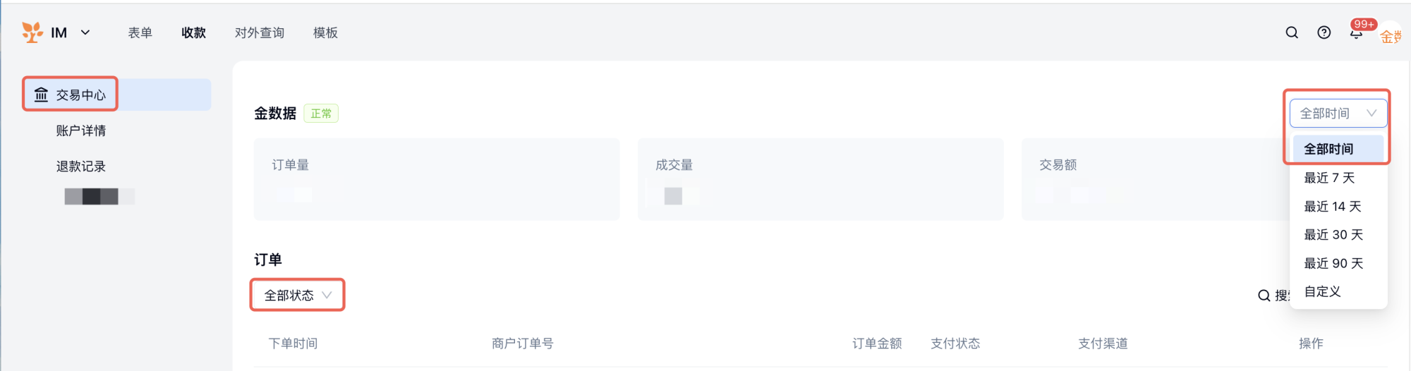 在表单收款中,当买家提交数据,点击支付后,就会产生一条交易订单。